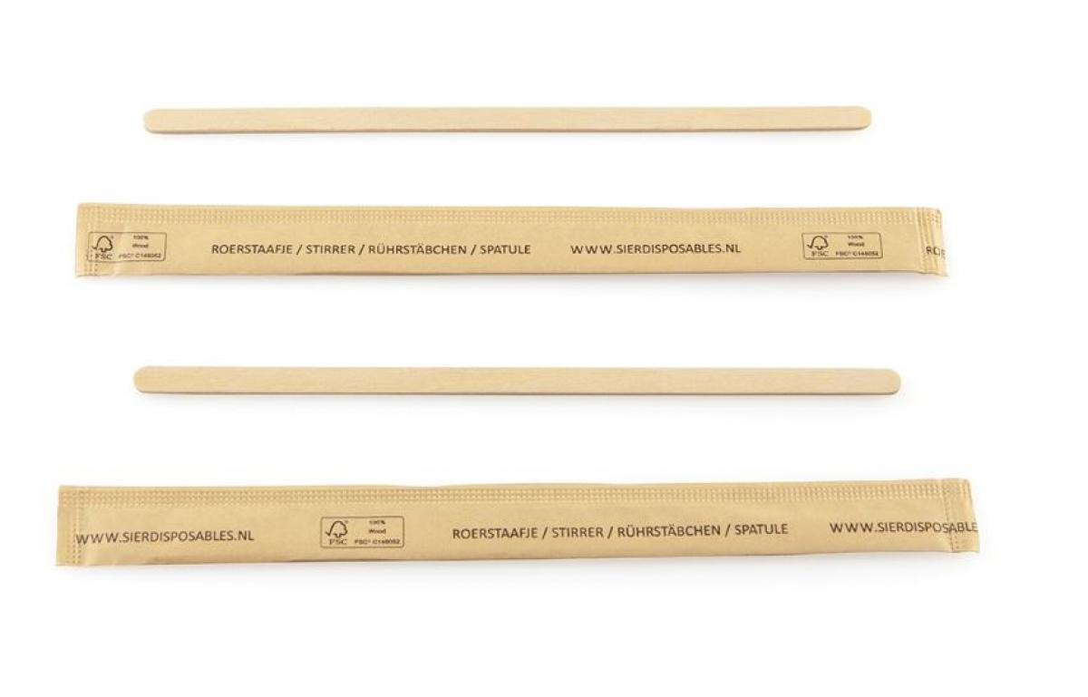 Roerstaafje hout (FSC) 110 x 5 x 1 mm, per stuk verpakt, 12 x 500 doos