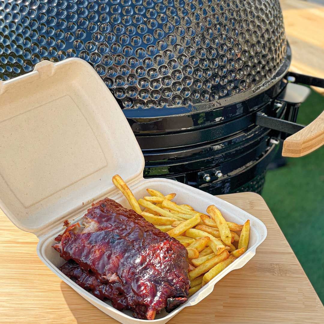 Suikerriet menubox 1-vaks IP4 kan worden gebruikt voor het verpakken van bezorgmaaltijden, zoals een pasta, rijstgerecht of vlees met friet. Bovendien biedt de suikerriet menubox 1-vaks een milieuvriendelijk alternatief voor plastic wegwerp menuboxen. Handig voor bij de menubox is ons wegwerpbestek.