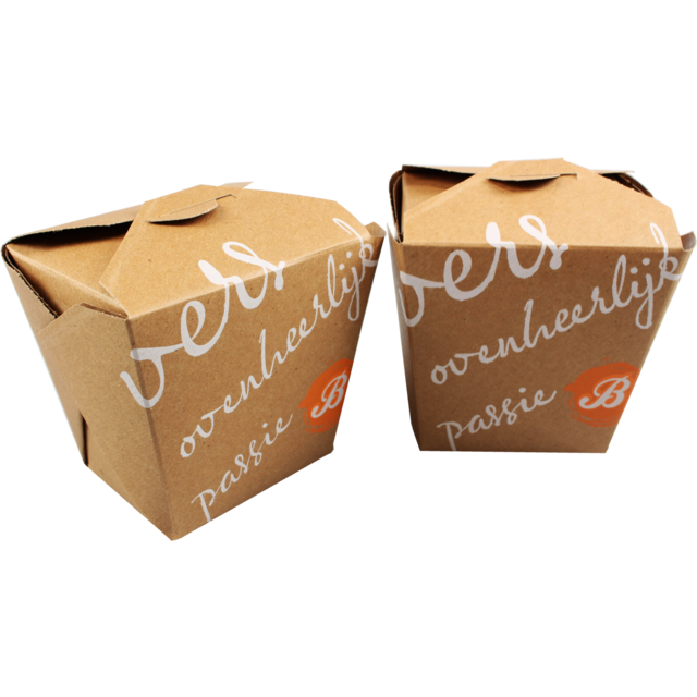 Deze hittebestendige kartonnen maaltijdverpakking doet uitstekend dienst als nasibak, bamibak, noodlebak of wokbak, en als menubak voor andere oosterse of Aziatische meeneemmaaltijden.