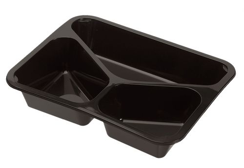 Bak, menuschaal, menutray, 3 vaks, M30/45, PP spuitgiet, zwart 227x177x45mm, 200 stuks