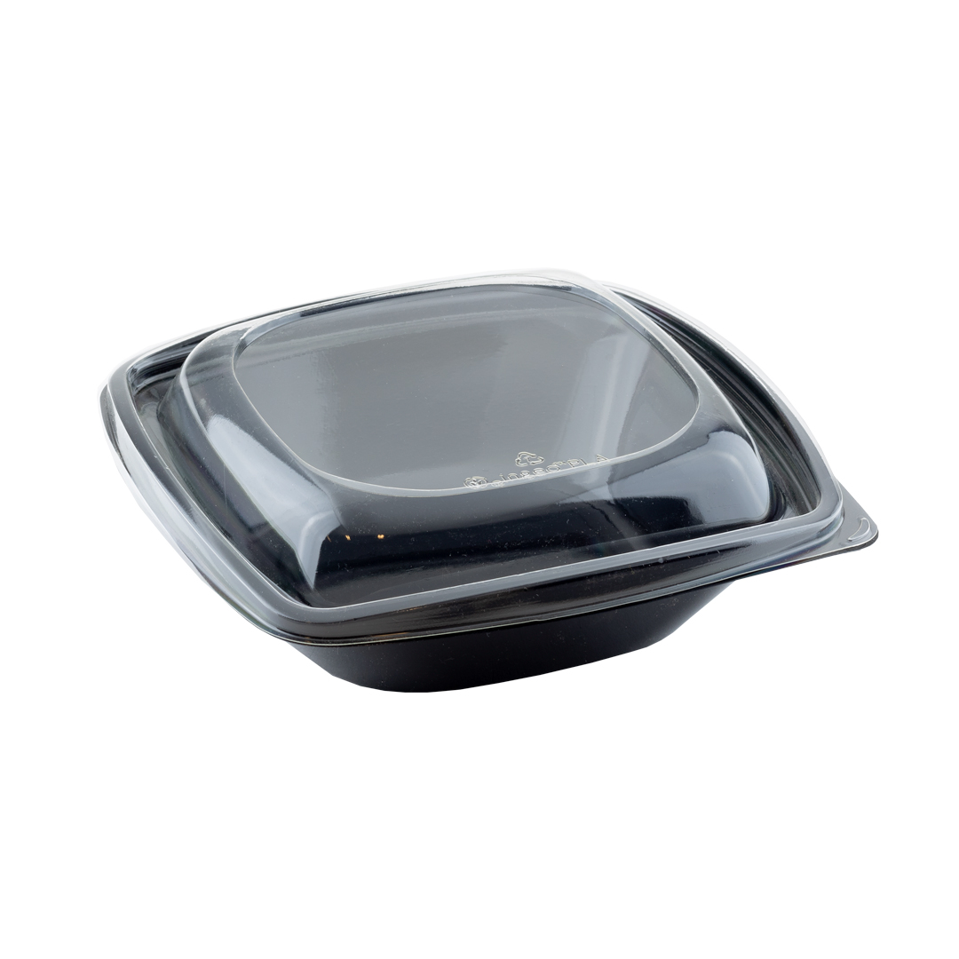 Saladebakje PLA + deksel zwart/transparant 720ml, 192x192x65mm, 6 x 50 stuks
