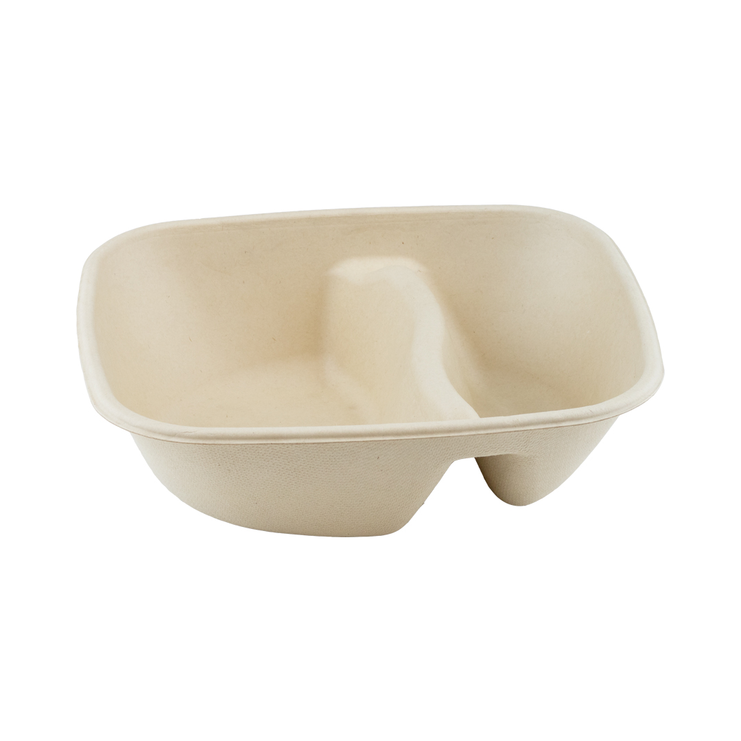 Bowl suikerriet rechthoek 780ml, 19,5x17x5cm 2-vaks, 4 x 100 stuks