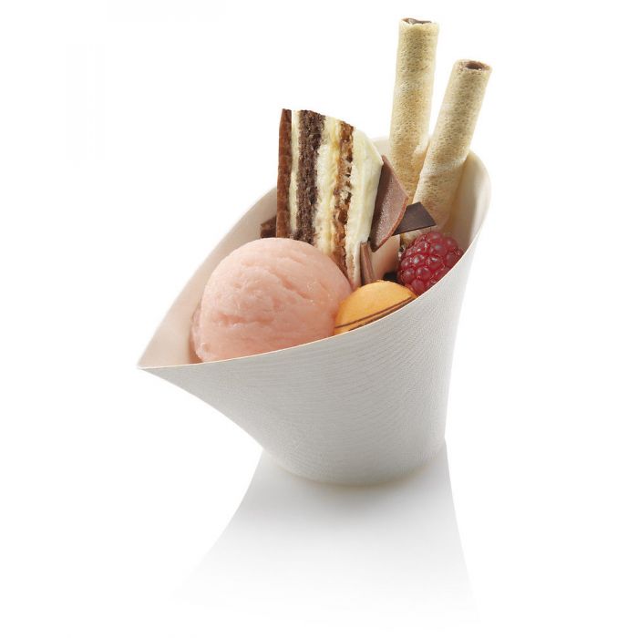 Suikerriet dessert bowl, ijsbeker "Jenny" heeft een modern design en kan worden gebruikt voor het serveren van uw dessert. Bovendien biedt de dessert bowl van suikerriet een milieuvriendelijk alternatief voor plastic dessert bowls.