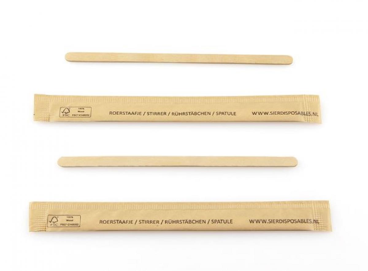 Roerstaafje hout (FSC) 140 x 5 x 1 mm, per stuk verpakt, 12 x 500 doos