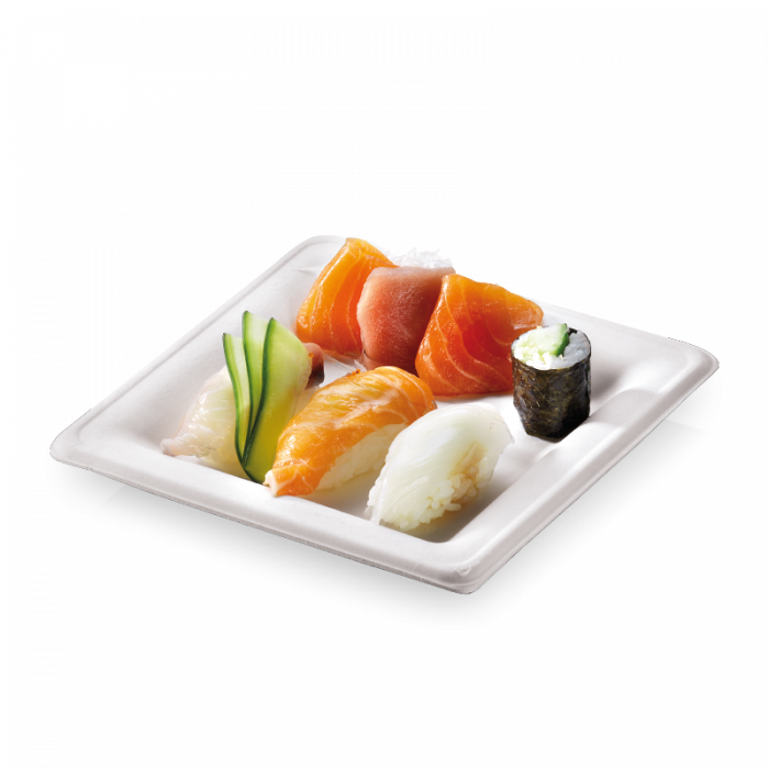 Suikerriet bord Karo "200x200x15mm kan worden gebruikt als amusebord voor de presentatie van kleine gerechten, zoals een voorgerecht of kleiner hoofdgerecht. Bovendien biedt suikerriet bord "Karo" een milieuvriendelijk alternatief voor de plastic borden. Combineer deze borden ook met ons wegwerpbestek.