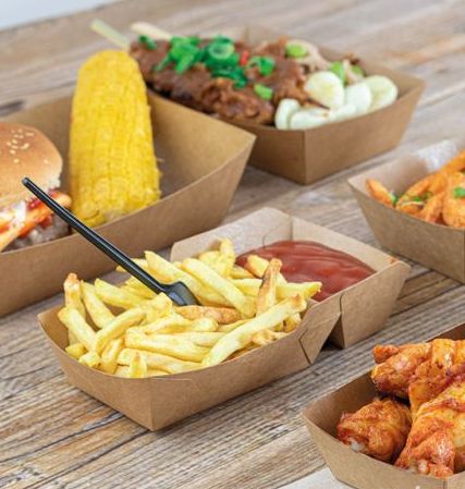 Gebruik het FSC® kraft snackbakje A7+1 voor het uitgeven van bijvoorbeeld kleine friet of portie kibbeling met saus. Het FSC® kartonnen snackbakje is gemaakt van kraft karton en is voorzien van een biologisch afbreekbare PLA (maiszetmeel) coating wat zorgt voor vocht en vetbestendigheid. Met dit FSC® kraft kartonnen bakje geef je jouw lekkernijen de trendy streetfood look.