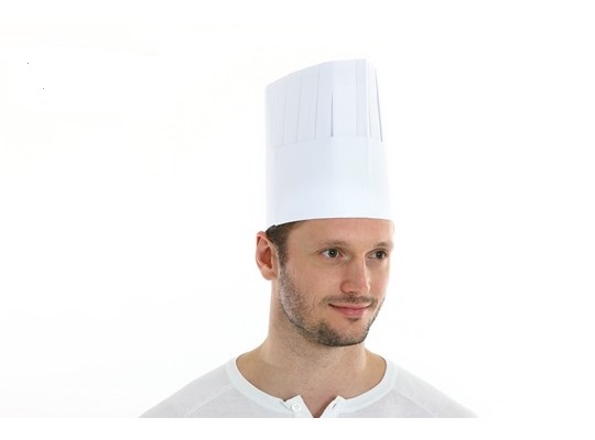 Koksmuts Classic, papier, 25cm wit, met kroon en zweetband, 250st/doos