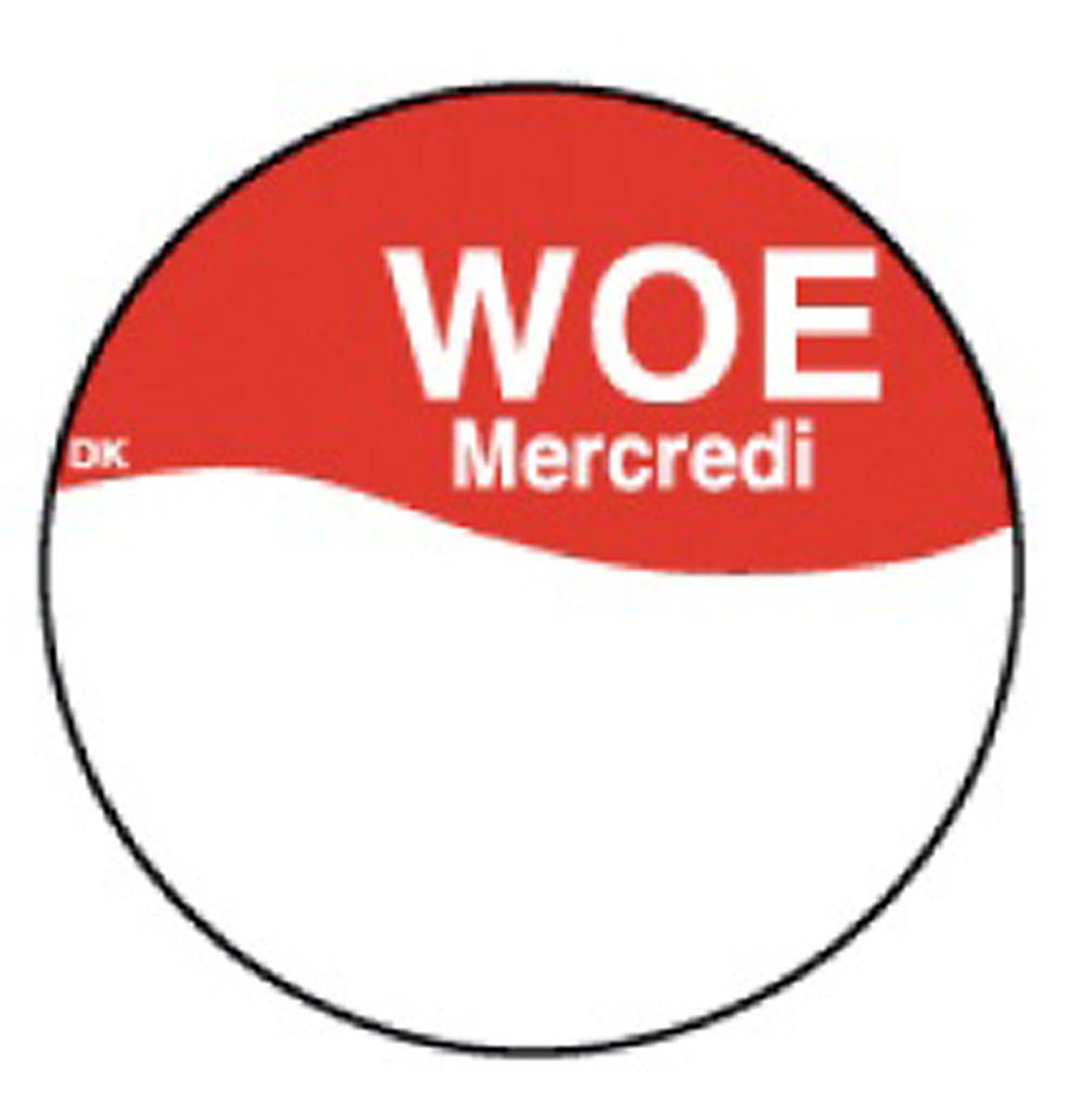 Permanente sticker m/schrijfvl. woensdag 19 mm 1000/rol, 1 rol