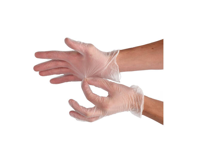 Deze disposable vinyl handschoenen zijn onpoederd en vormen een goed alternatief voor iedereen met een latexallergie. CMT vinyl handschoenen zijn verkrijgbaar in diverse maten en kleuren en combineren een perfecte pasvorm met een superieur tastgevoel. Eigenschappen: * Materiaal: polyvinylchloride (PVC) Kleur: wit * Poedervrij, glad, met rolrand * AQL 1.5 * Lengte: 240 mm * Links en rechts draagbaar * Gebruik: gezondheidszorg, voedingsindustrie (geschikt voor contact met levensmiddelen)