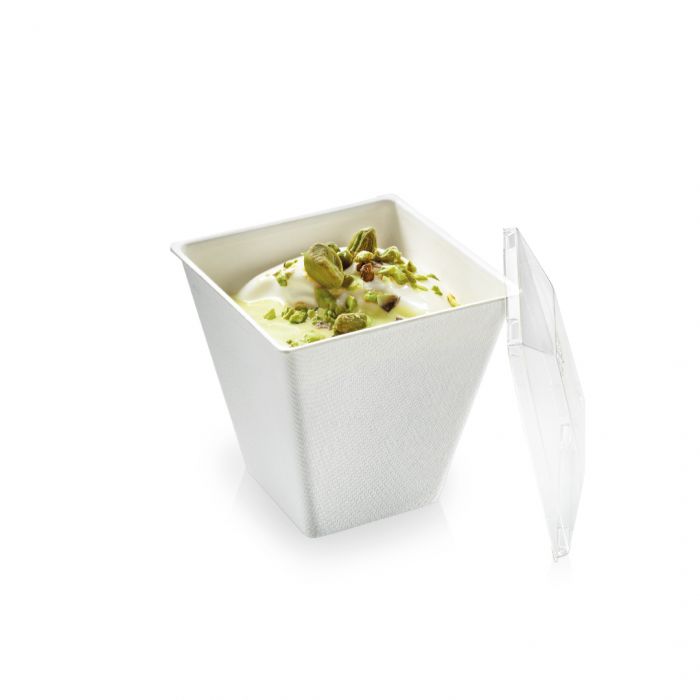 LET OP: Dit amusebakje is afsluitbaar met een PLA dekseltje. Het dekseltje is los verkrijgbaar en te vinden in het onderstaande tabblad gerelateerde artikelen.