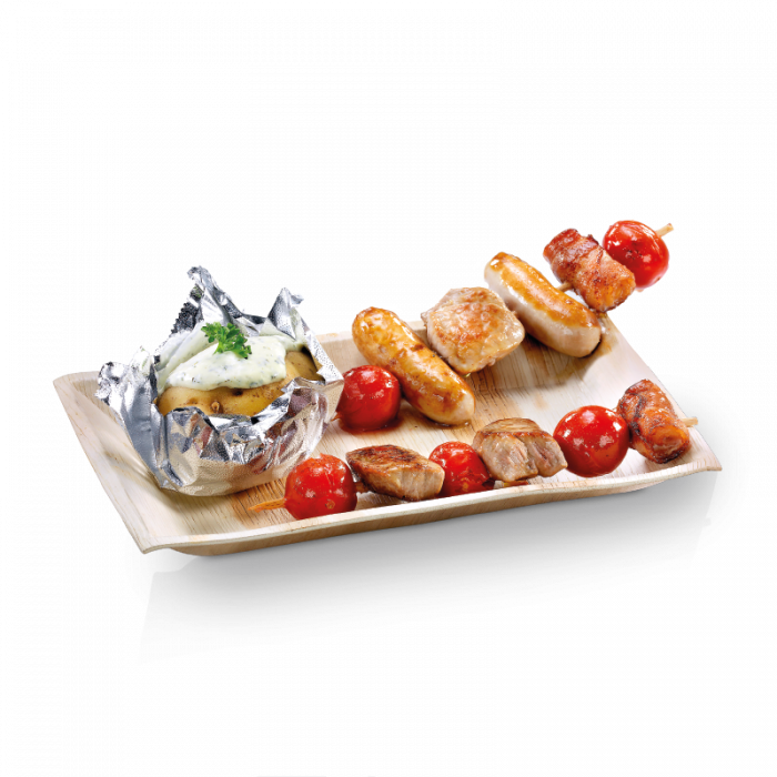 Palmblad bord “Cuadra 12x17cm” kan gebruikt worden voor de kleine gerechten zoals een voorgerecht of nagerecht. Ook is het bord goed te gebruiken voor andere kleine hapjes. Dit palmblad bord heeft een natuurlijke uitstraling en biedt een milieuvriendelijk alternatief voor plastic bordjes. De borden zijn goed te combineren met ons houten wegwerpbestek.