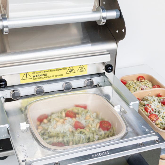 Deze verpakking is geschikt om af te sluiten met sealing folie. Bij gebruik van grotere hoeveelheden maaltijdverpakkingen kunt u op kosten besparen door verpakkingen te voorzien van folie in plaats van deksels. Afhankelijk van de toepassing en uw bedrijfsmodel adviseren wij u graag. Wij bieden uitgebreide mogelijkheden voor topsealen van maaltijdverpakkingen.