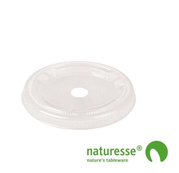De PLA deksel plat 76mm Ø met rond gat kan worden gebruikt voor het afsluiten van de PLA drinkbekers met een diameter van 76mm.