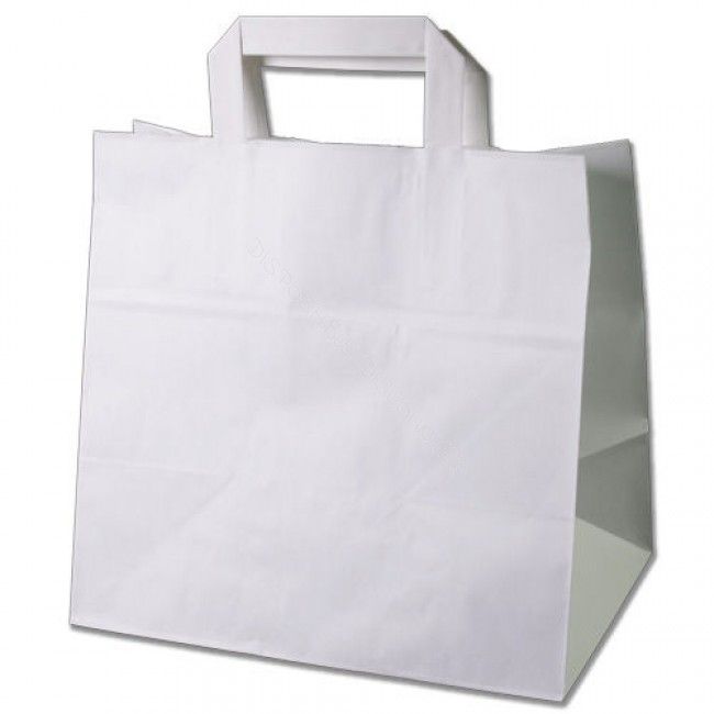 Draagtas blokbodem, Eco Wit, papier, 70 grams, 32×18×26 cm, 300 stuks.