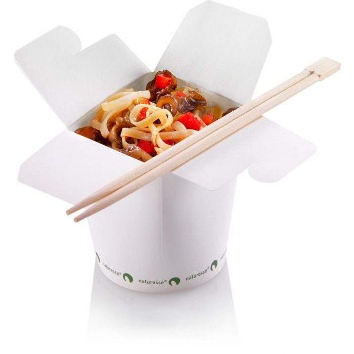 Gebruik de FSC® kraft noodle box 500ml voor de uitgifte van een aziatisch gerecht zoals noodles of een rijstgerecht. De FSC® kartonnen noodle box is gemaakt van kraft karton en is voorzien van een biologisch afbreekbare PLA (maiszetmeel) coating wat zorgt voor vocht- en vetbestendigheid.