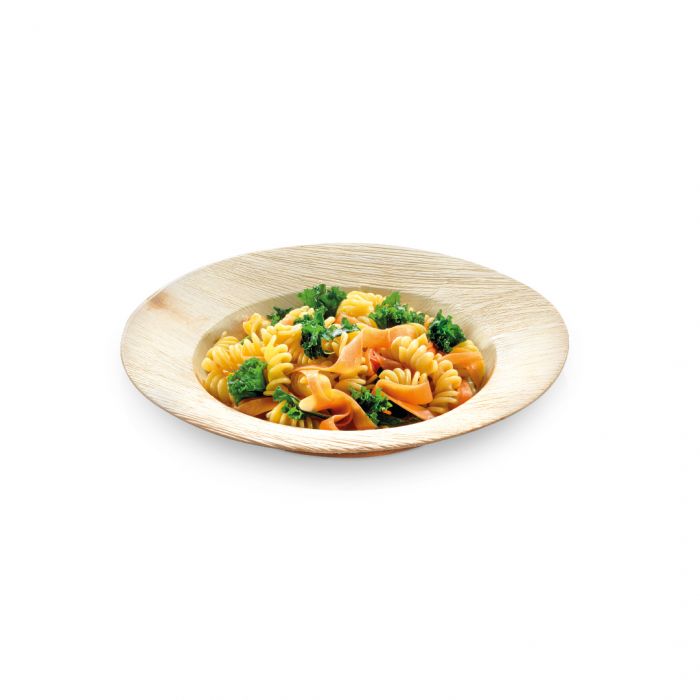 Palmblad pastabord 300ml is een luxe gevormd bord voor het serveren van bijvoorbeeld een hoofdgerecht met pasta. Het palmblad bord heeft een natuurlijke uitstraling en biedt een milieuvriendelijk alternatief voor de plastic borden. De borden zijn ook goed te combineren met ons houten wegwerpbestek.