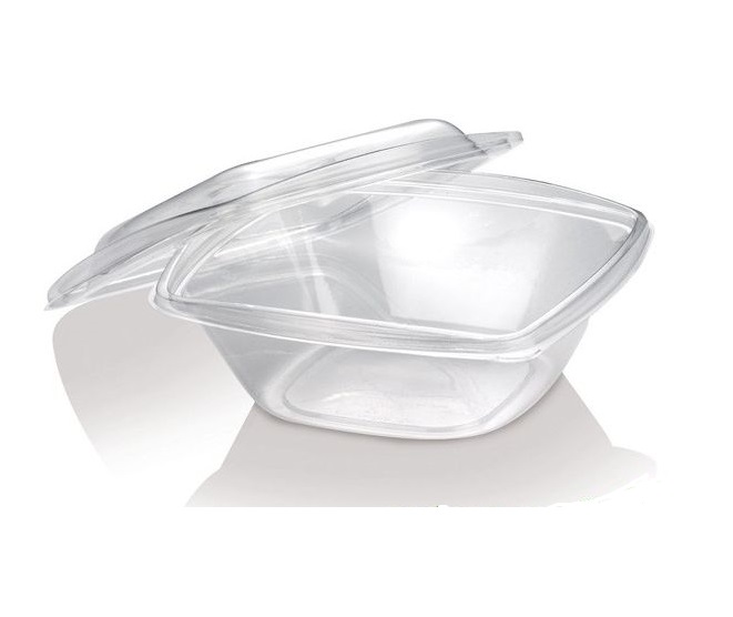 Saladebakje PLA + deksel transparant 960ml, 192x192x78mm, 6 x 50 stuks