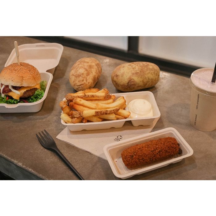 Het suikerriet snackbakje A5 is geschikt als kroketbakje of geschikt voor andere snacks zoals een bamihap of kaassouffle. De suikerriet bakjes zijn het milieuvriendelijke alternatief voor de plastic snackbakjes.