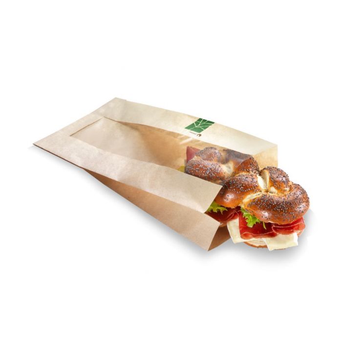 Deze PaperWise® vensterzak is voorzien van een centraal venster gemaakt van PLA (maiszetmeel) en heeft een zij-vouw van 2x3cm. Door het venster komt de presentatie van uw vers belegde stokbrood uitstekend tot zijn recht.