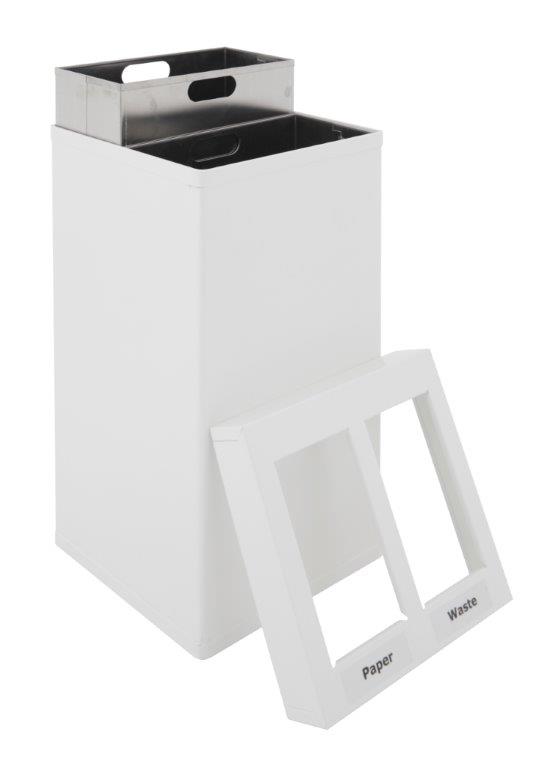 Design afvalbak van RVS of aluminium voor afvalscheiding met 2 aluminium binnenbakken (2x 52,5 ltr). Inclusief (basis) stickerset afvalscheiding. , VB 650057, L 360 b 360 h 765, mm