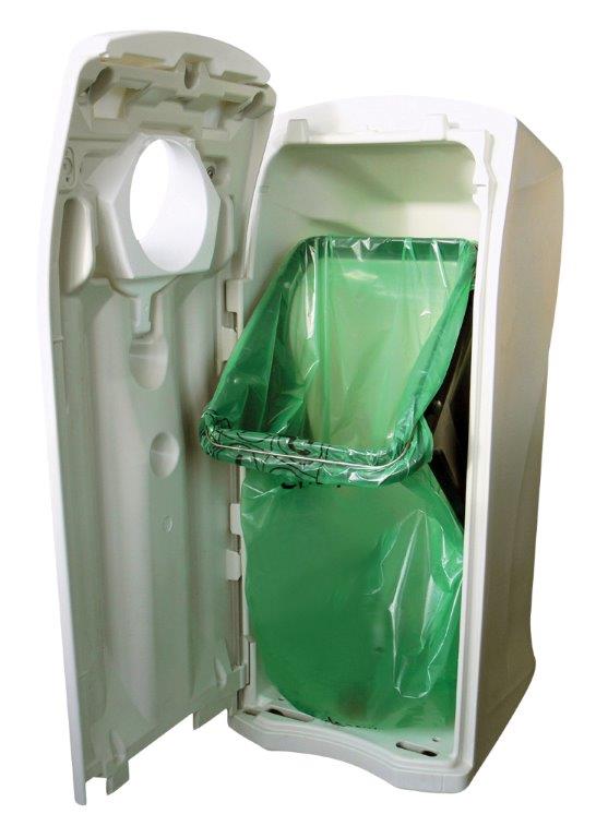 Grote capaciteit recyclingcontainer van hoogwaardige kwaliteit vervaardigd uit rotatiegegoten kunststof (MDPE). Voorzien van smalle gleuf-inwerpopening, afvalzakhouder en deur aan de voorzijde. Gemakkelijke toegang voor het legen en vervangen van de afvalzak. Geïntegreerde mogelijkheid voor ballast of vloermontage. , VB 063963, L 615 b 550 h 1220, mm