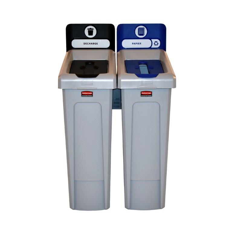 Slim Jim Recyclingstation 2-stroom FR deksel gesloten (zwart)/papier (blauw), Rubbermaid , grijs, zwart, blauw, L 546 b 610 h 1022, mm