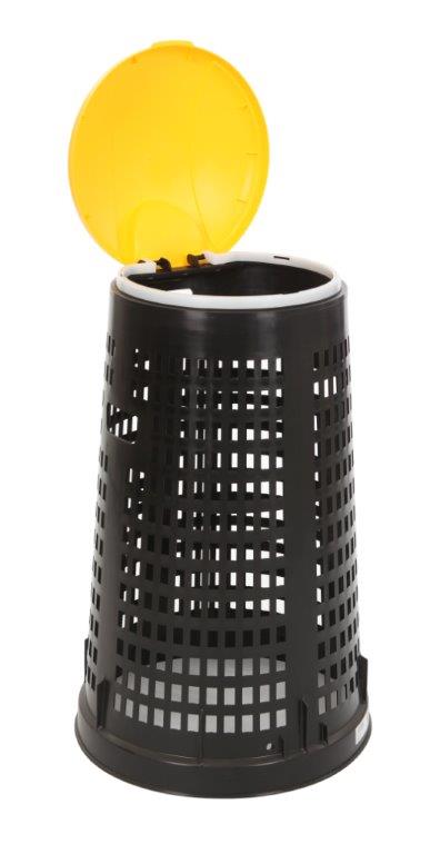 Geperforeerde kunststof afvalbak Ruff , zwart, geel h 870 ø 525, mm