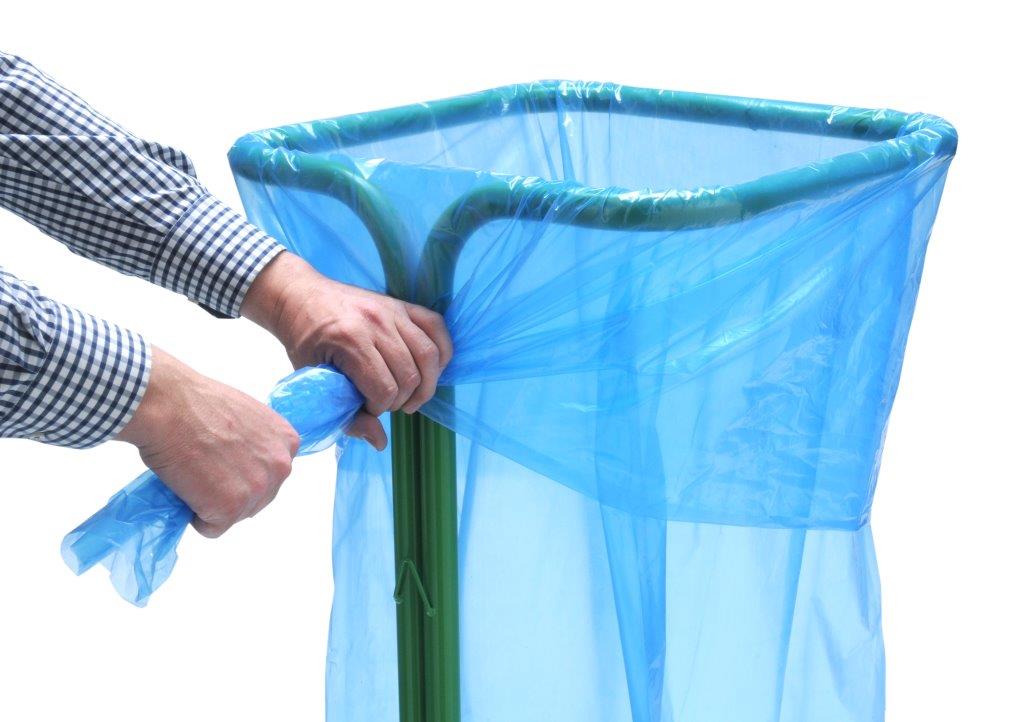 Metalen buisframe voor het inzamelen van folies, kunststoffen of EPS. Uniek zelfklemmend systeem waardoor de afvalzak blijft zitten zonder gebruik te hoeven maken van losse klemmen of clips. , VB 893313, L 800 b 800 h 1150, mm