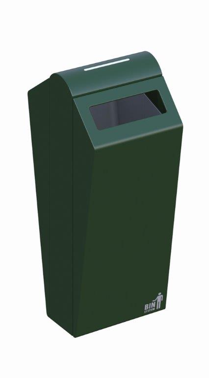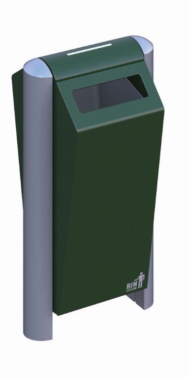 Fraai vormgegeven, robuuste buitenafvalbak van hoogwaardig, gepoedercoat verzinkt staal met inworpopening aan beide zijden. Met een meegeleverde driekantsleutel is de afvalbak eenvoudig en snel te ontgrendelen. Door het openen van de deur is de robuuste, maar lichte aluminium binnenbak (100 liter) vrij toegankelijk en eenvoudig te ledigen. Duurzaam en vandalismebestendig. Te bevestigen tussen aluminium profielstaanders in de grond. Ideaal voor plaatsing in een (attractie)park, nabij een winkelcentrum of openbare gelegenheden zoals scholen, ziekenhuizen, sport- en bedrijfsterreinen. , VB 711550, L 499 b 400 h 1120, mm