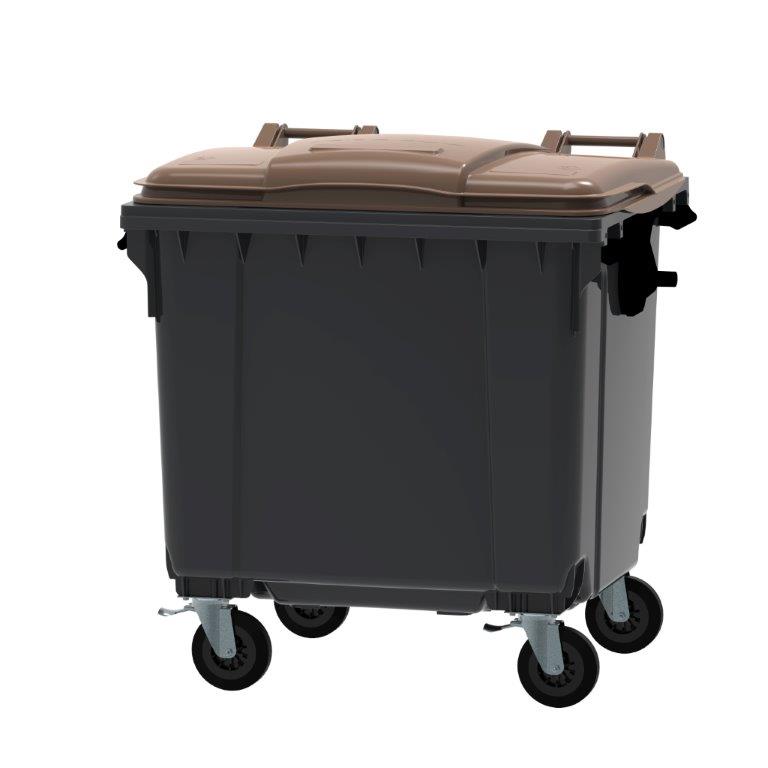 Container 1100 ltr vlak deksel , grijs, bruin, L 1254 b 1073 h 1354, mm