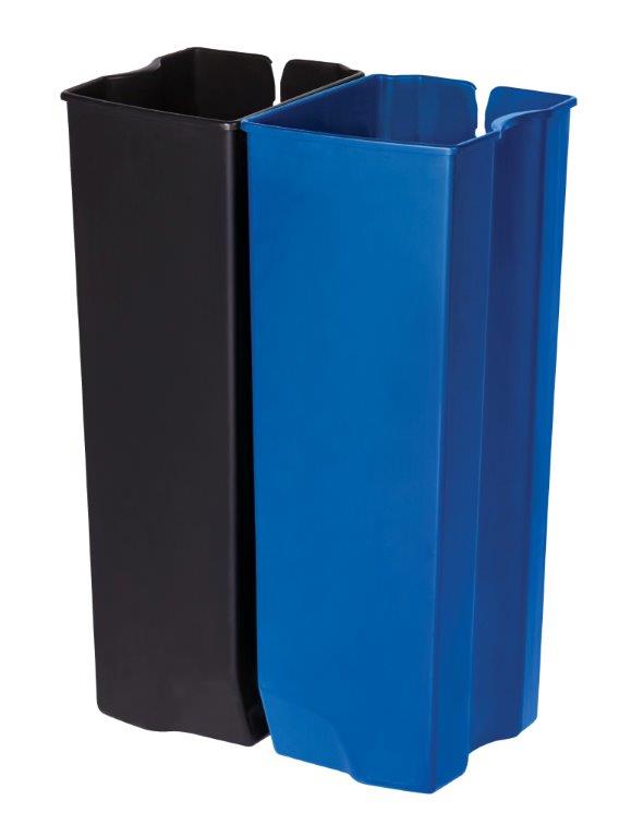 Recycling binnenbakken 2x25 ltr Front Step RVS, Rubbermaid , zwart, blauw, L 444 b 284 h 657, mm