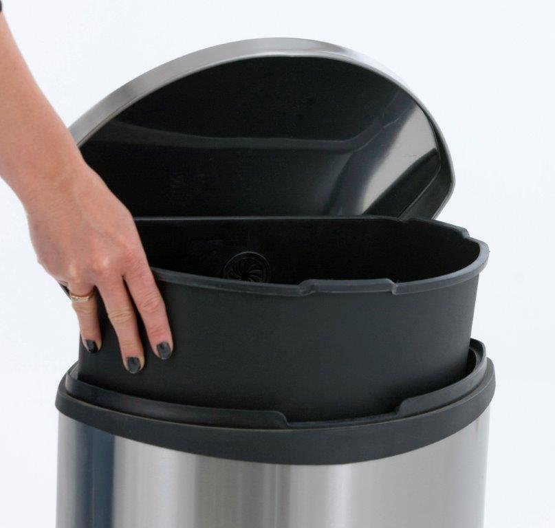 Opvallende schelpvormige pedaalemmer voorzien van gedempt deksel en kunststof binnenemmer. Fingerprint Proof. , VB 921830, L 375 b 340 h 690, mm