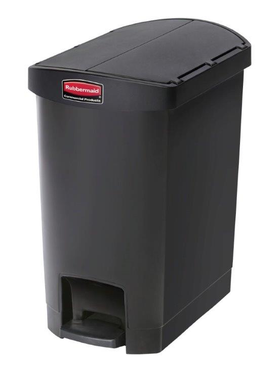 Slim Jim Step On container End Step kunststof 30 ltr, Rubbermaid , zwart, L 497 b 311 h 566, mm