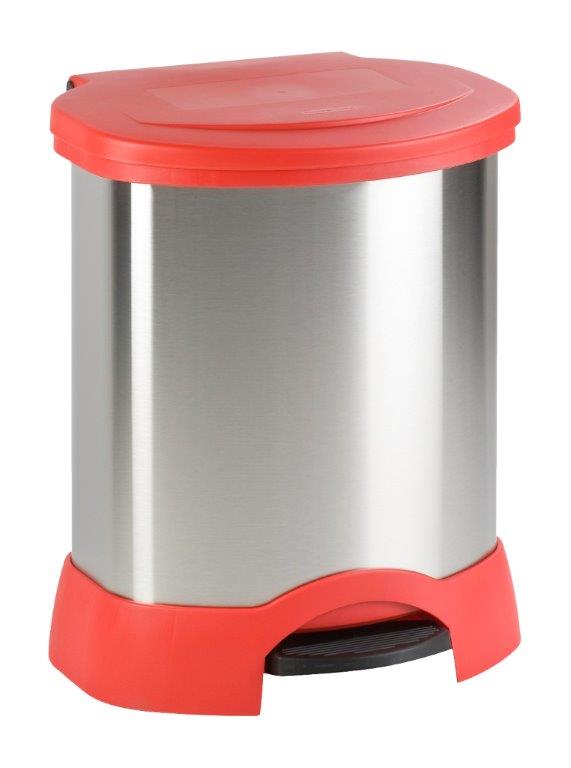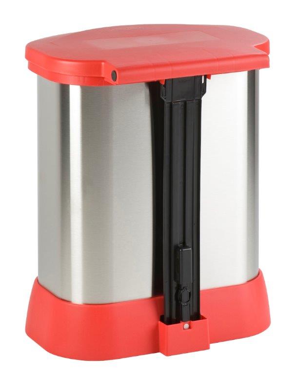 Step-On afvalcontainer 87 ltr, Rubbermaid , mat RVS, rood, L 516 b 577 h 693, mm
