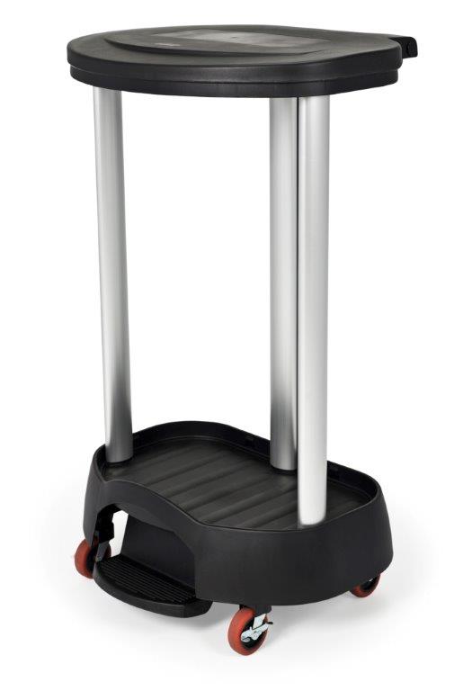 Wasmand/zakhouder van schokbestendig kunststof en aluminium voor het efficient verzamelen van linnengoed. Voorzien van deksel met dempingsmechanisme, zakhouder en stille zwenkwielen. , VB 006300, L 480 b 577 h 960, mm