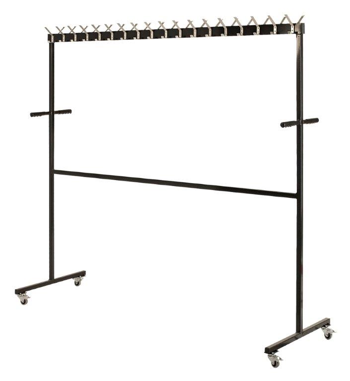 Dubbelzijdig garderoberek op 4 geremde zwenkwielen, voorzien van 18 dubbele haken aan iedere zijde. Met handige handvatten om het garderoberek te verplaatsen. , VB 200600, L 610 b 1960 h 1730, mm