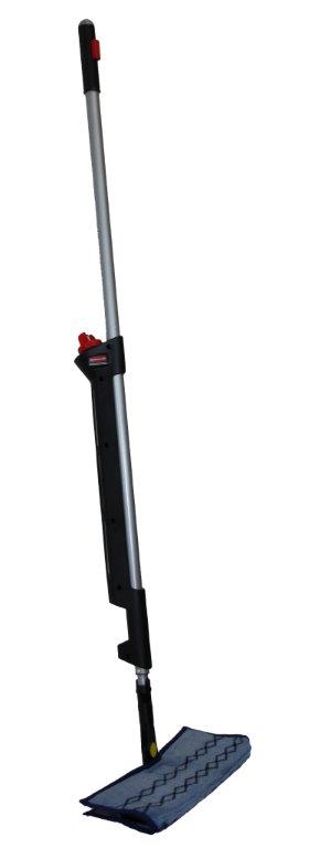 Pulse microvezelvloerreinigingssysteem met dubbelzijdig frame (40 cm). 2 taken in 1: gebruik eerst de stofmop (groene kant) en daarna de andere zijde van de mop (blauwe kant) voor klamvochtig gebruik. Heeft een ingebouwd navulbaar vloeistofreservoir dat voldoende reinigingsmiddel kan bevatten om tot 80 m2 vloer schoon te maken. Gebruik de steelknop om het reinigingsmiddel in 3 stralen achter de mop te verdelen. (Mop apart bestellen). , VB 186237, L 95 b 124 h 1422, mm