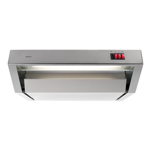 met ingebouwde motor, roestvrijstalen uitvoering, voorzien van een 3-standenschakelaar, verlichting, controlelamp, roestvrijstalen onder plateau en roestvrijstalen vetfilter, de wasemkappen werken volgens het rand-afzuigsysteem waardoor een hoger rendement wordt verkregen, alle types zijn voorzien van een thermocontact dat bij oververhitting de stroom uitschakelt, wordt compleet geleverd met bevestigingsmateriaal. Afmetingen (H) 17x60x52 cm, Diamer doorvoer 12,5 cm, 230 volt 115 watt