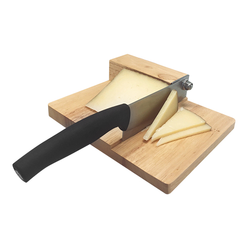 kaassnijder op houten plank met rvs mes, (h)6x22x29 cm.