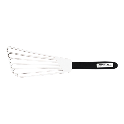 bakspaan, spatel rvs met sleuven, zwart handsvat, 28 cm