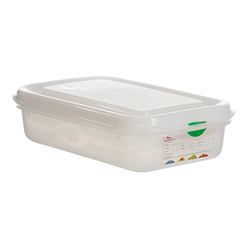 voedseldozen Denox, hermeticos, luchtdicht afsluitbaar door uniek dubbel afsluitsysteem, geschikt voor vriezer -40°C en magnetron +100°C (plaatsen zonder deksel), vaatwasmachine bestendig, wordt compleet geleverd met product coderingsset volgens de HACCP normen (rood, geel, groen en blauw). de dozen worden inclusief deksel geleverd.