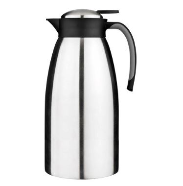 roestvrijstaal, dubbelwandig, met soft grip, drukknop sluiting, brede opening voor goede reiniging.