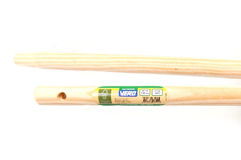 Steel hout 1500 x 28 mm, FSC® gecertificeerd, lange en dikkere steel met ophanggat,korte konus voor groot stokgat