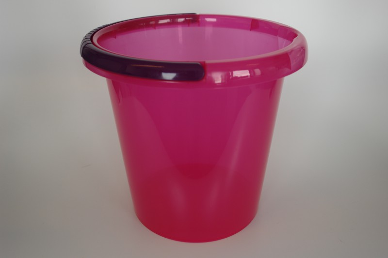 Emmer roze Transparant 10L, inkeping in de bodem voor het goed kunnen legen van uw emmer