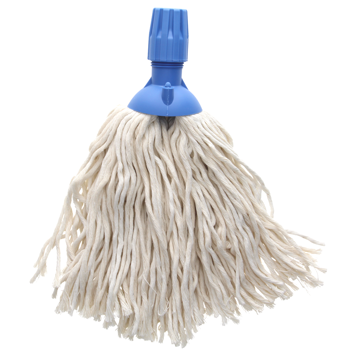 Minimop met schroefdraad, katoen 220 gram met ronde blauwe kunststof dop / universele stokhouder