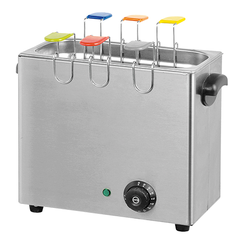 voorzien van 8 eiermandjes met kleur codering, thermostaat en controlelampjes. Afmetingen: (h)15x20x10 cm 230 volt 400 watt