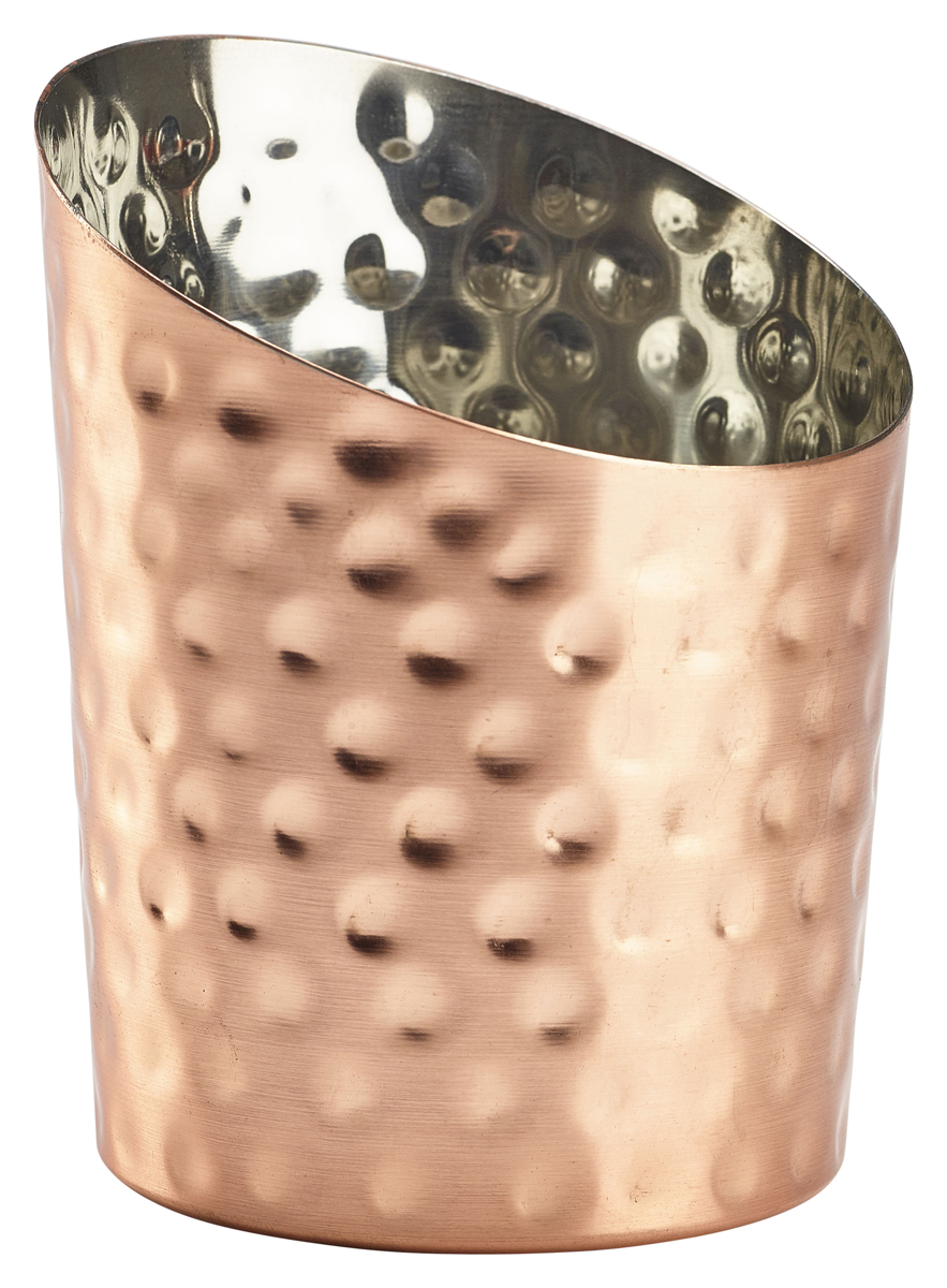 Koperen friet/Presentatie bakje gehamerd schuin Ø 9,5 cm, 1 stuks