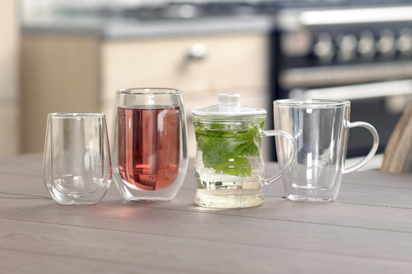 De bekers zijn vervaardigd uit borosilicaatglas en zijn bovendien vaatwasmachine- en microgolfovenbestendig.