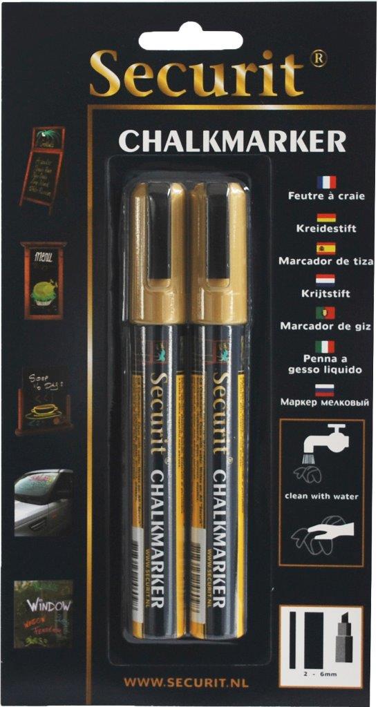 Krijtstift 2-6 mm middel goud Liquid, securit, 2 stuks
