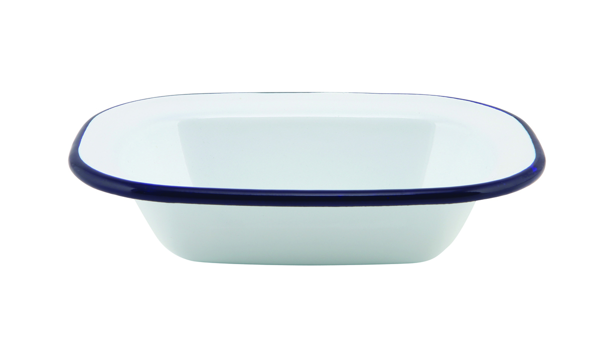 Emaille ovenschaal met blauwe rand 16 cm, 12 stuks